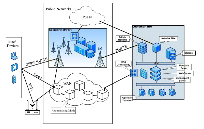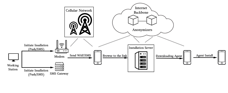 Surveillance threats can originate from actors who have gained access to foreign mobile networks located around the world. Network surveillance is made possible through a surveillance software platform that connects to a mobile network and sends signaling command messages commonly used for international roaming. Since the messages are used in mobile networks, they don’t require malware or software installed on a victim’s phone in order to extract information or intercept communications.